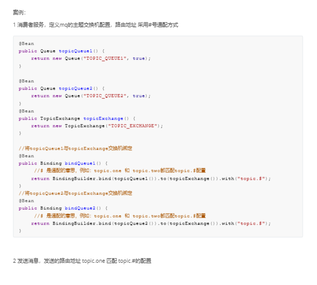 直連交換機的routing_key方法非常簡單,如果希望將一條消息發送給多個隊列,那么這個交換機需要綁定非常多的routing_key,這樣的話消息的管理就會非常的因難。 所以RabbitMQ提供了一種主題交換機,發送到主題交換機上的消息需要攜帶制定規則的routingkey,主題交換機會根據這個規則將數據發送到對應的隊列上。