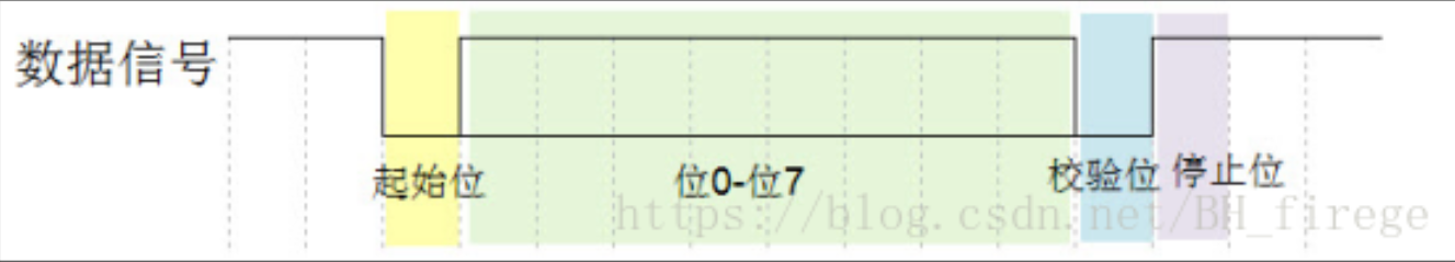 本章中主要講解的是串口異步通訊,異步通訊中由于沒有時鐘信號,所以兩個通訊設備之間需要約定好波特率, 即每個碼元的長度,以便對信號進行解碼,上圖中用虛線分開的每一格就是代表一個碼元。常見的波特率為4800、9600、115200等。
