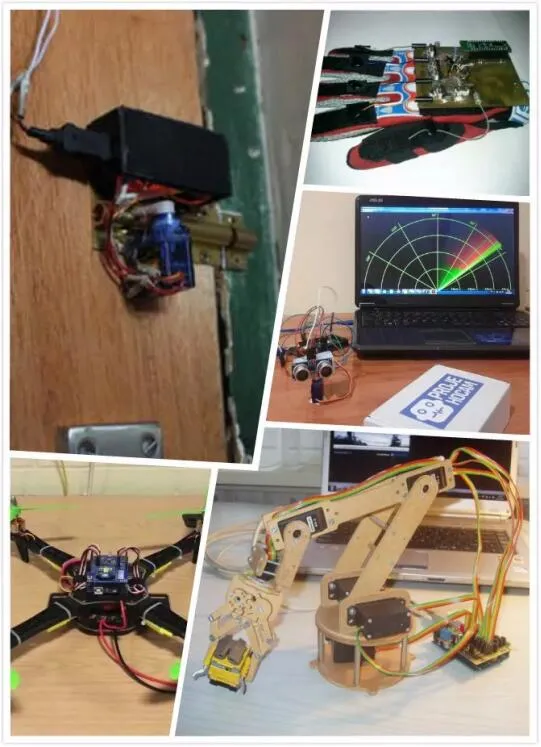 只要你有足夠的創意,Arduino都會幫你實現,比如用手機來開關你的臺燈、特定的敲門聲可以自動打開房門鎖、無人機和機械手臂等等。