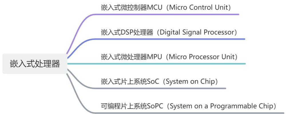 在介紹單片機之前我們先了解一下嵌入式處理器有哪些類型: