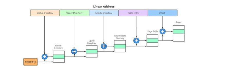 而對于64位系統,二級分頁就無法滿足了,Linux 從2.6.11開始采用四級分頁模型。
