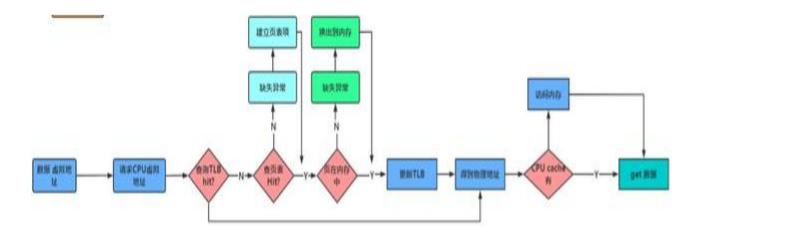 如果一個需要訪問內存中的一個數據,給定這個數據的虛擬地址,查詢TLB,發現有hit,直接得到物理地址,在內存根據物理地址取數據。如果TLB沒有這個虛擬地址miss,那么只能費力地通過頁表來查找了。日常CPU讀取一個數據的流程如下: