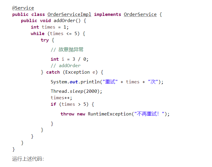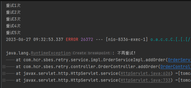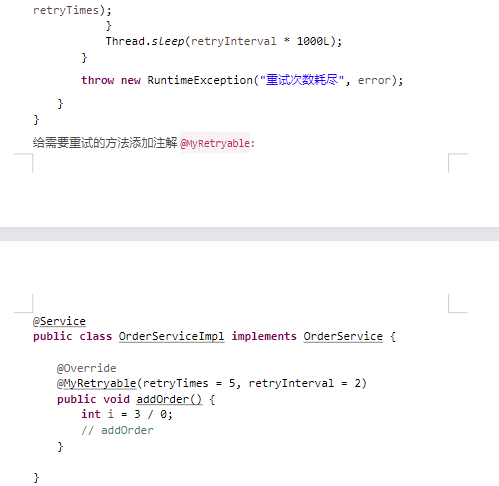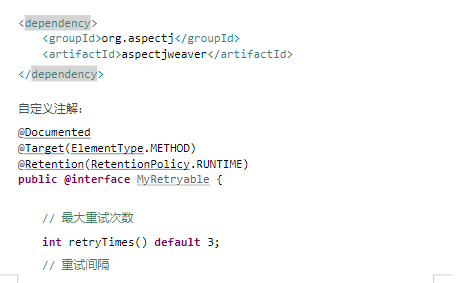 這樣即不用編寫重復代碼,實現上也比較優雅了:一個注解就實現重試。