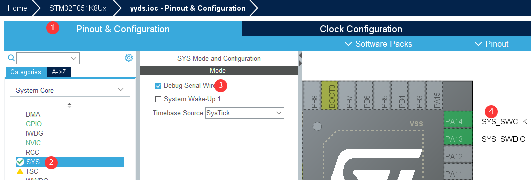 在STM32CubeMX工具中,Debug選項進行如下配置即可。
