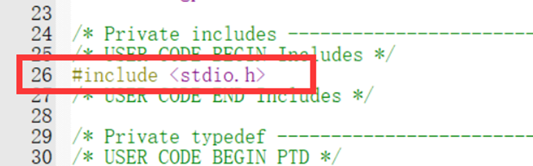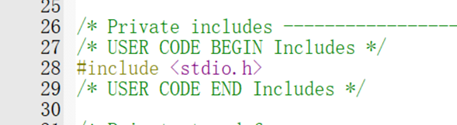 因為要使用printf,所以需要添加stdio.h頭文件,并且為其重定向輸出。