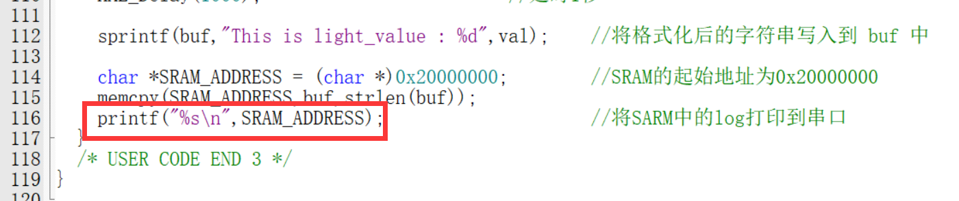 在需要查看log信息的時候,您可以從SRAM的地址中讀取信息并輸出到串口或者其他輸出設備上。(這里,我們直接輸出到串口)
