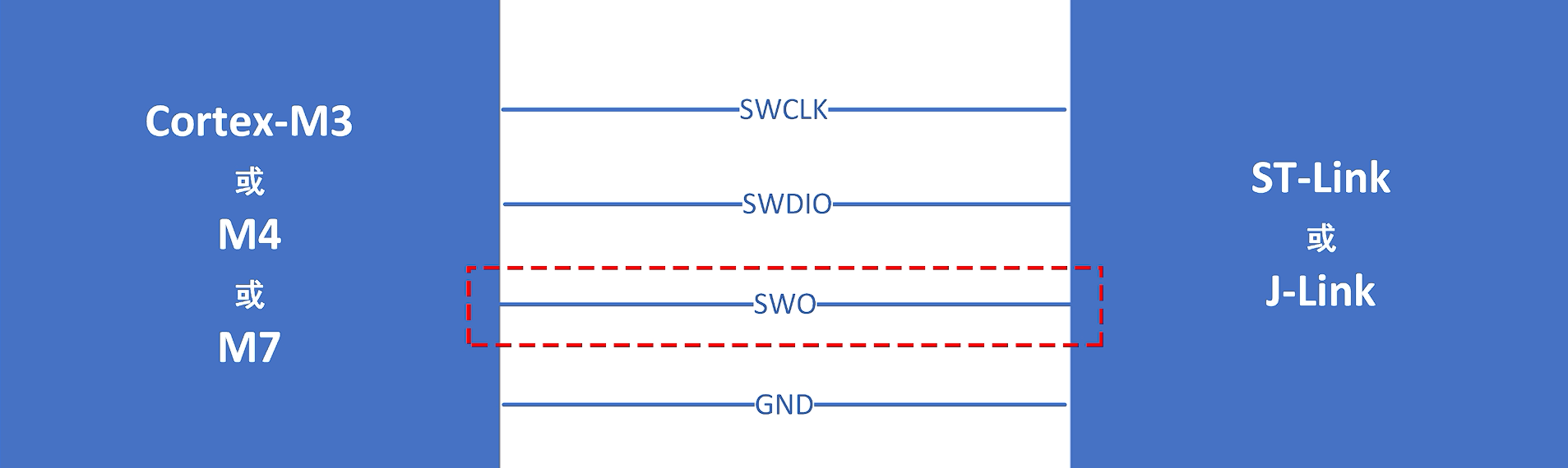 SWO串行線輸出是單引腳、異步串行通信,可在Cortex-M3/M4/M7上使用,并由主調試器探測支持。