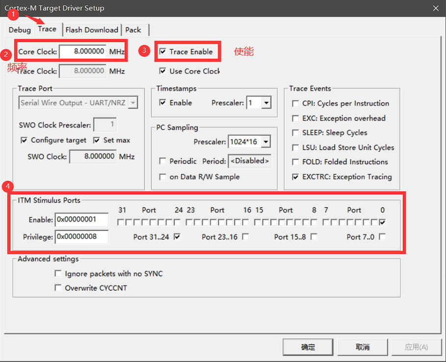 注意:Clock和ITM STimulus Ports根據情況自行設置