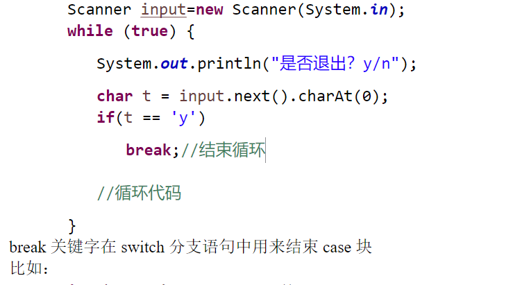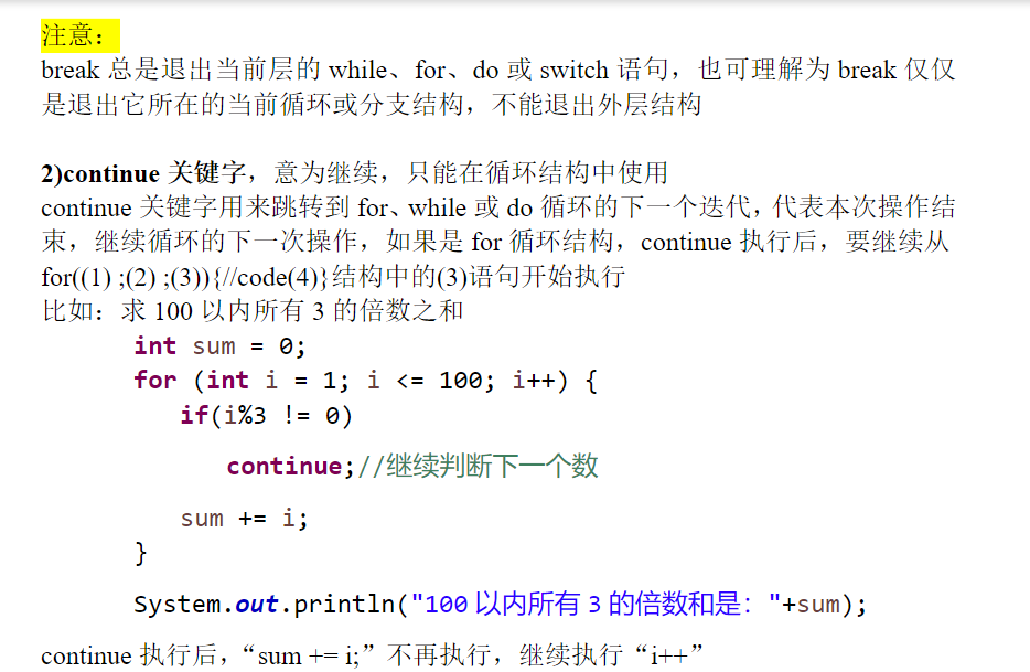 1)break關鍵字,作用是跳出、中斷,結合循環語句或分支switch結構使用,不可單獨應用