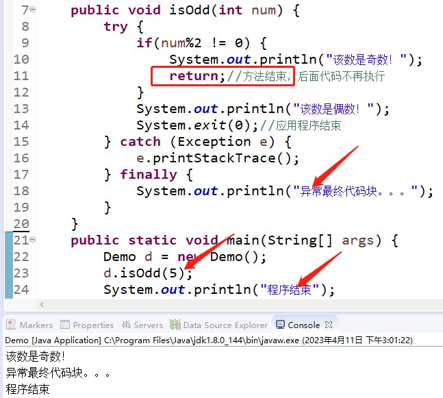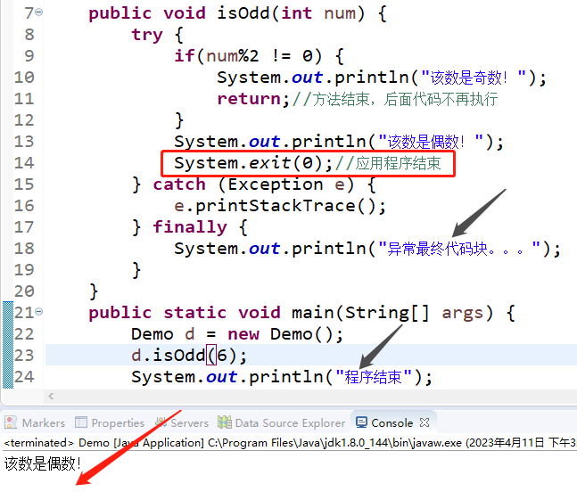 程序運行的結果,可以看到,exit之后的代碼都不再執行了,包括finally塊