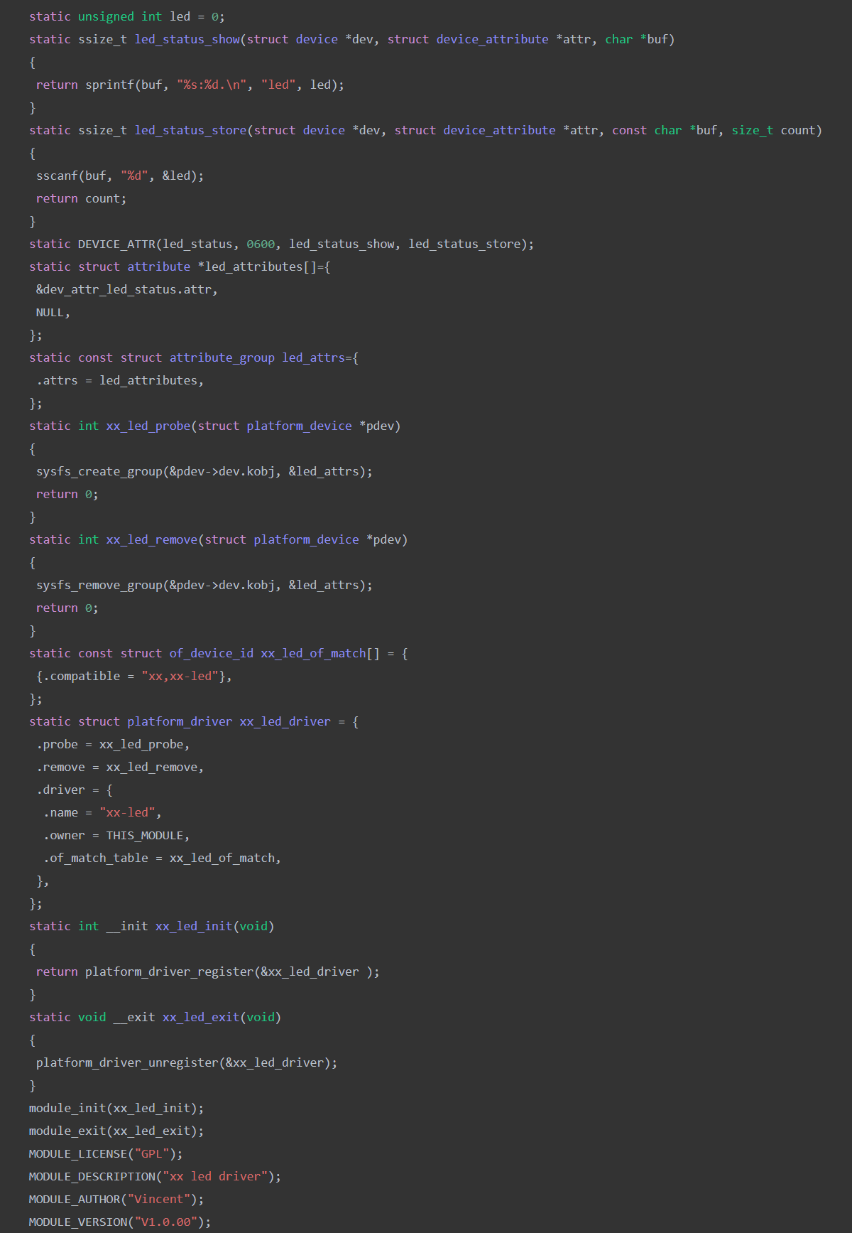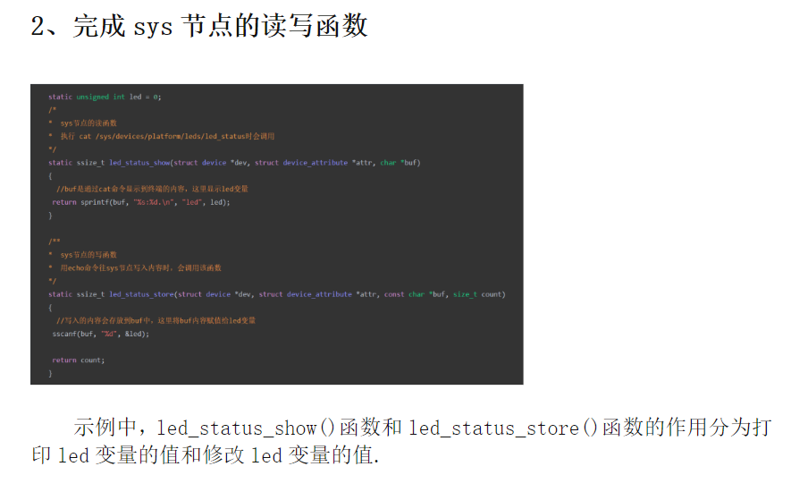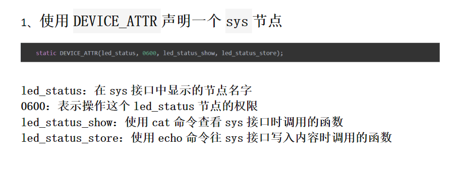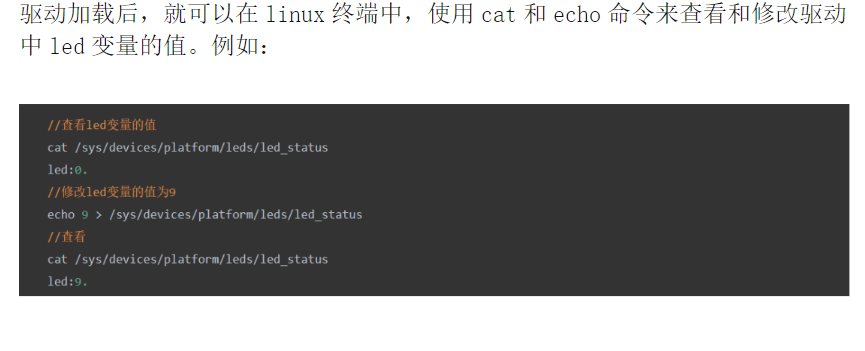 因為在驅動中提供了sysfs接口給用戶使用,使得用戶可以通過cat或者echo命令來查看和修改驅動中某些變量的值。