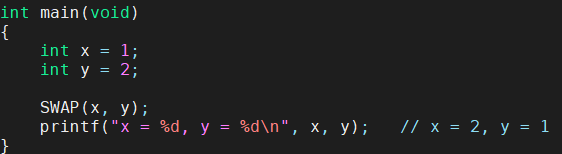 SWAP(x, y); 后面的 ; 使得 if 的作用域終結了,后續的 else 當然沒有找到與之匹配的 if 了。宏函數應該適用于任何語法。