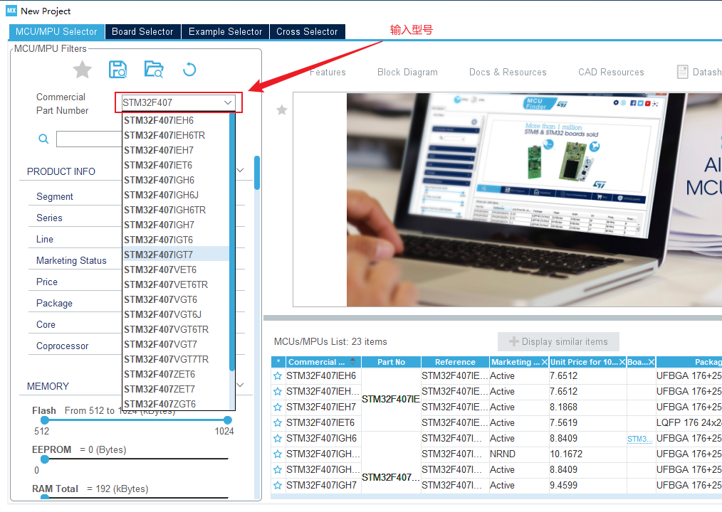 這里我們以STM32F407IGT6為例,雙擊選擇對應單片機的型號。