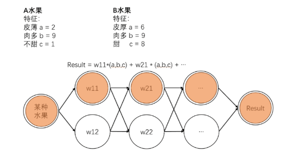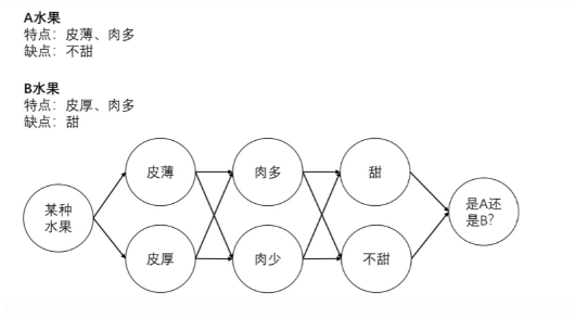 對于未知的水果,我們可以通過已知的特點結構決策出是A類水果,還是B類