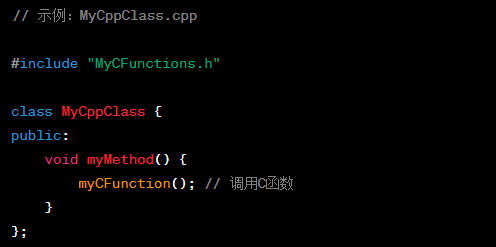 在C文件中,可以包含上述頭文件,并直接調用C++函數。
