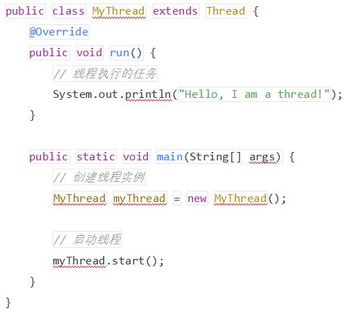 1) 繼承自 Thread 類的 MyThread 類,案例如下
