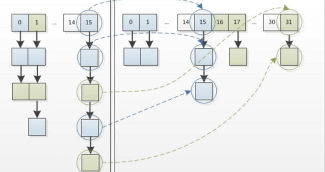 擴容時重新計算索引效率更高:hash(原始hash) & oldCap(原始容量)== 0 的元素留在原來位置 ,否則新位置 = 舊位置 + oldCap(原始容量)