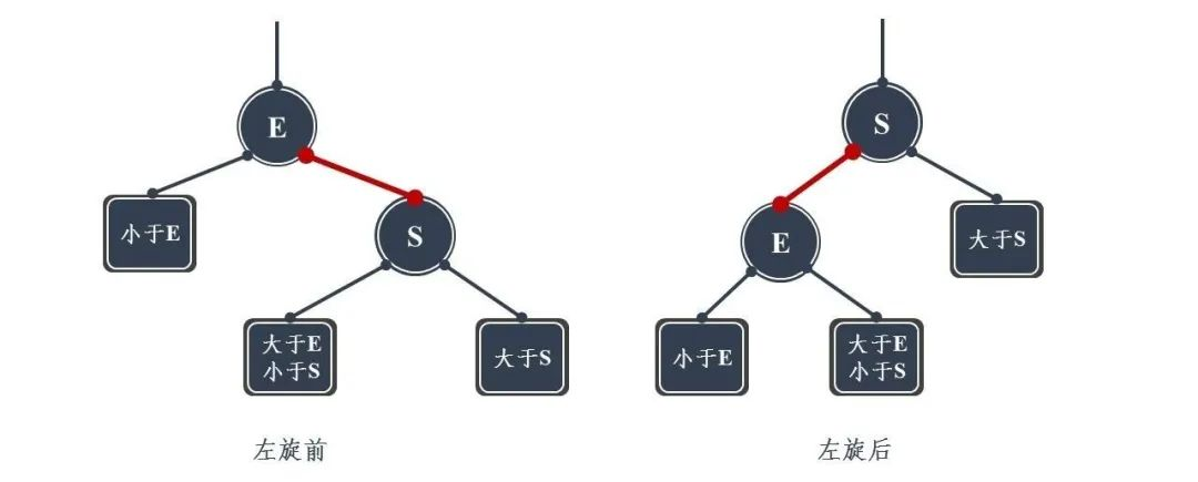 左旋:S為當前需要左旋的結點,E為當前結點的父節點。