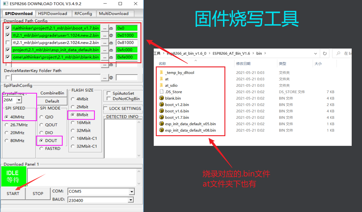 ②、燒寫AT固件:燒錄的.bin文件在上邊提供的 燒錄工具和例程下載 的網盤鏈接里。