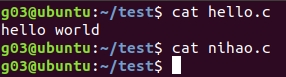 其中:hello.c具有文本:hello world,而nihao.c無本文