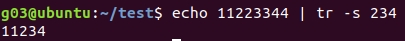 利用tr -s 命令將文本“11223344”,tr命令選擇其中234進行壓縮,得出”11234”,原因是我們操作范圍只限定于‘2’‘3’‘4’三個字符,并未把‘1’歸納進去。