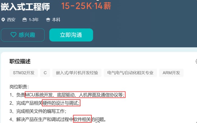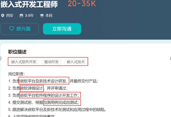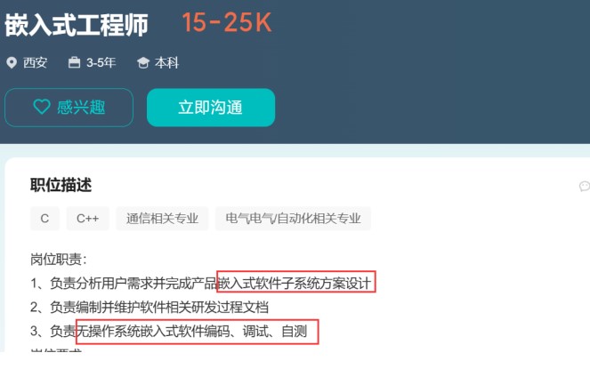 如下是BOSS招聘網上對于嵌入式工程師的職責要求: