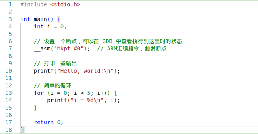 l 設(she)置斷點(dian):可(ke)以設(she)置斷點(dian)在 main 函數或任何其他地方(例如,剛(gang)剛(gang)插入的 __asm("bkpt #0"))。