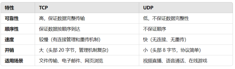 在計算機網絡中(zhong),TCP(Transmission Control Protocol,傳輸(shu)控制協議(yi))和 UDP(User Datagram Protocol,用(yong)戶(hu)數據報協議(yi))是(shi)兩(liang)種常用(yong)的(de)傳輸(shu)層(ceng)協議(yi),它們在數據傳輸(shu)方式、應(ying)用(yong)場景(jing)、性能以及(ji)可靠性等(deng)方面存在顯(xian)著差異(yi)。理解這兩(liang)種協議(yi)的(de)區別,對于網絡應(ying)用(yong)程序的(de)設計和開發(fa)至關重要。
