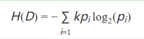 其(qi)中(zhong),H(D)是(shi)數據集 DD 的(de)熵,pi是(shi)數據集 D中(zhong)第 i類(lei)的(de)概率,k 是(shi)類(lei)別的(de)總數。