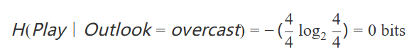 2. 對于(yu)Outlook=overcast,有4個實例(li),全部是正例(li):