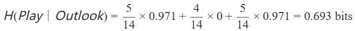 接下來,我們使(shi)用(yong)Outlook屬性(xing)來劃(hua)分數(shu)據集,并計算劃(hua)分后的信息熵(shang)。Outlook屬性(xing)有(you)三個取值(zhi):sunny、overcast和rain。
