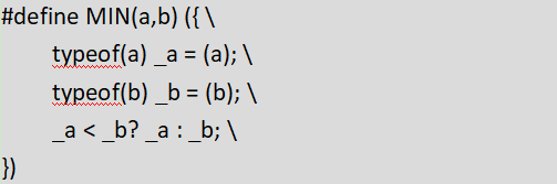 然而,上述(shu)基礎(chu)版本的(de) MIN 宏存在一些(xie)潛在的(de)問(wen)題。其中(zhong)一個就是類(lei)型安(an)全問(wen)題。為了解決這(zhe)(zhe)個問(wen)題,我們可以(yi)使用 typeof 關鍵字(zi)(這(zhe)(zhe)是 GCC 編譯器(qi)的(de)一個擴展特性,如果使用其他編譯器(qi)可能需要考慮兼容性)來(lai)編寫一個更加健壯的(de) MIN 宏: