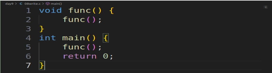 這個func函數會無限遞歸,每(mei)次(ci)調用都會將函數的返回地址、局部變量(liang)等信息壓(ya)入(ru)棧中。棧空間是有限的,最終就會導(dao)致棧溢出(chu)。