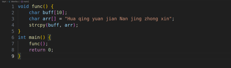 在這個(ge)例子(zi)中(zhong),strcpy函數(shu)會(hui)將arr復制(zhi)到buff中(zhong),但arr的(de)(de)長度超過了buff的(de)(de)容量,就(jiu)會(hui)導致緩(huan)沖區(qu)溢(yi)出,可能會(hui)覆蓋棧上相鄰的(de)(de)內存區(qu)域(yu),引發棧溢(yi)出。