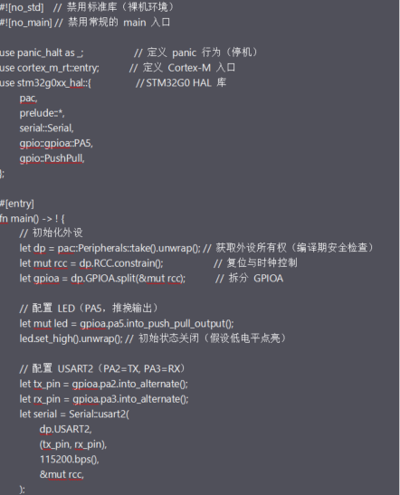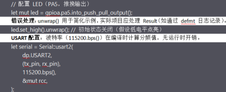 GPIO 控制(zhi):into_push_pull_output() 在編譯(yi)期生成最優指(zhi)令(ling)(等(deng)效于直接寫寄存器)。