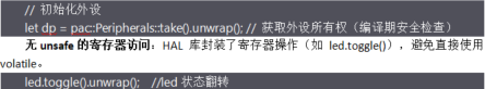 所(suo)有權機制:Peripherals::take() 確保外設全局唯一,防止多(duo)位置誤操作。