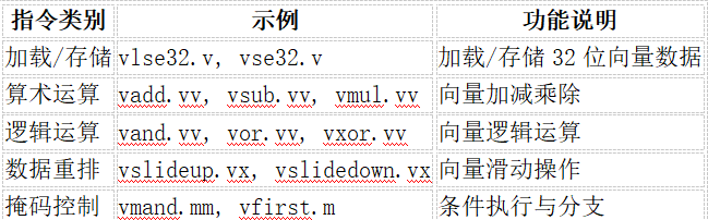 RVV 提(ti)供了(le)(le)豐(feng)富的向量指令,涵蓋了(le)(le)數(shu)據加(jia)載、運算、壓(ya)縮、擴展(zhan)、掩碼(ma)等(deng)常用操作(zuo):