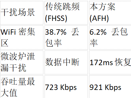 · 工控現(xian)場(chang)實測數據:在(zai)80個(ge)WiFi AP覆蓋環境下,固定79跳的(de)藍牙BR/EDR協議丟(diu)包率可達42%