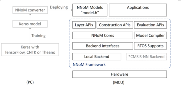 NNoM是一個(ge)專門為了(le)神經網(wang)絡在 MCU 上運行的(de)框架。 NNoM 是一個(ge)定點神經網(wang)絡庫, 現在支(zhi)持(chi) 8-bit定點格式。當前 NNoM 支(zhi)持(chi)數(shu)十(shi)種操作,卷積,池化,激活,矩陣計(ji)算等等。此(ci)外還提供多種在線評估方(fang)法(fa),包括時間統(tong)計(ji),內存統(tong)計(ji),Top-K 準確度,Confusion Matrix 等等。