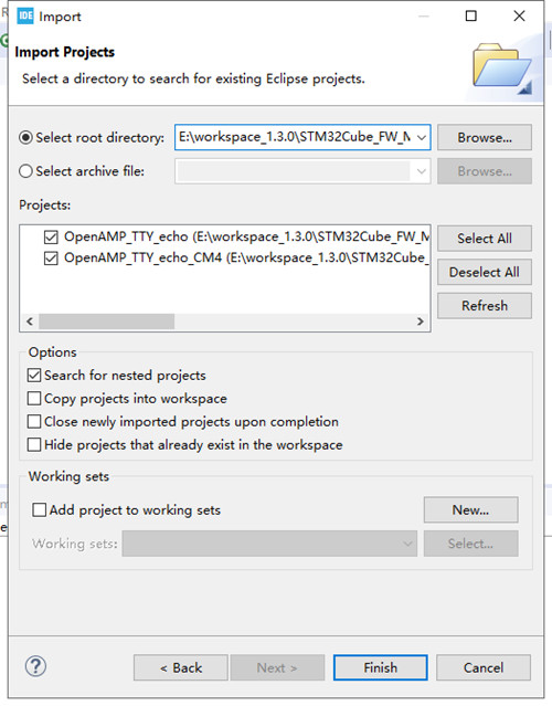 瀏覽目錄選擇工程OpenAMP_ TTY _echo,光盤路徑為:
