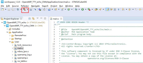 選擇項目OpenAMP_ TTY _echo_CM4并單擊Build按鈕