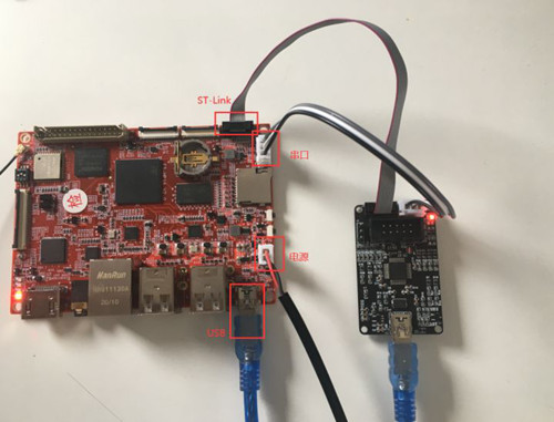 開發板上電,并如下圖連接開發板USB和ST-Link至PC。
