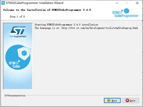 雙擊“SetupSTM32CubeProgrammer-2.4.0.exe”允許安裝向導。