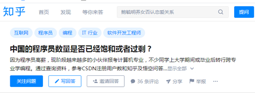 前段時間,知乎熱搜榜上(shang)出現一個讓程(cheng)序員(yuan)聞之色變的問題:“中國程(cheng)序員(yuan)數量是否已經飽和或者過剩?”頓時網(wang)上(shang)一片(pian)焦(jiao)慮的聲音。