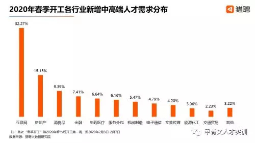 2月12日,獵(lie)聘今日發布《疫情下2020中高端人才開(kai)工大(da)數據報告》顯示, 2020年春季開(kai)工互(hu)聯網行業用人需求(qiu)新(xin)增超30%,成為(wei)新(xin)增人才需求(qiu)最大(da)的行業。