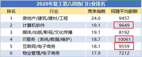 再結(jie)合疫情(qing)期(qi)間,人工智能、工業互聯網、物聯網、商用5G在發揮(hui)的重大(da)作(zuo)用,“新基建”熱(re)度持續提升,直接(jie)導致互聯網技術人才缺口增大(da),在高技術服務和制造(zao)業領域增長(chang)將尤其明(ming)顯。