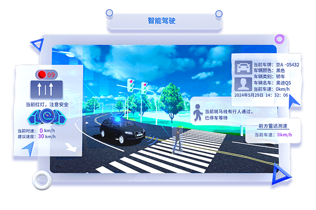 預設自動駕駛的(de)道路場景(jing),感知與識別環境信(xin)息(xi)與道路信(xin)息(xi),完(wan)成決策與規(gui)劃(hua)算(suan)法部(bu)署,通過類PID算(suan)法控制車輛姿態進行自主導(dao)航與智能交互。