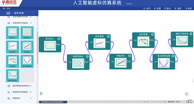 人工智能中的算法原理部分若只是通過單純PPT講解會導致出現理解困難,學習時間長等問題。但元宇宙—人工智能在線實驗平臺通過將算法進行拆分與可視化,把算法拆分成多個組件,方便進行理解,然后平臺仿真動畫深入淺出地講解原理,讓學生能夠直觀“看到”算法的工作原理和過程。學生可以即時看到算法執行的結果,并通過動態調整參數觀察結果變(bian)化(hua),加深對算法(fa)的(de)理(li)解,讓(rang)算法(fa)學習更加直觀和(he)有趣。