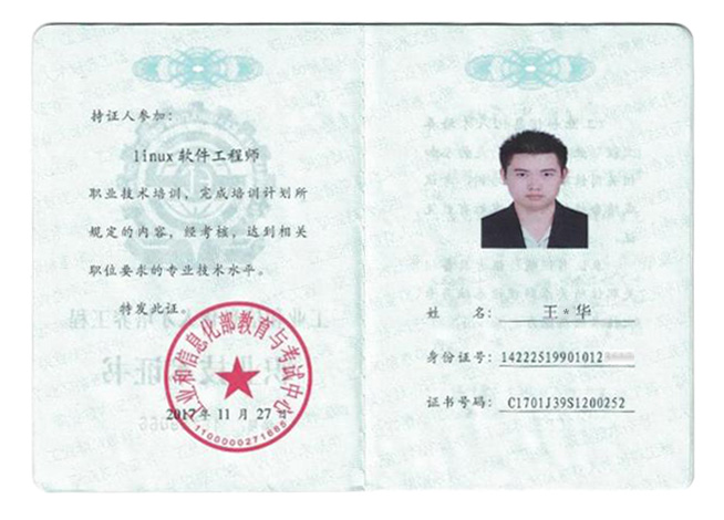 · 紅帽攜手華清遠見共建Linux開發人才培養標準微軟(ruan)嵌入式工(gong)程(cheng)師認證證書樣本(ben)