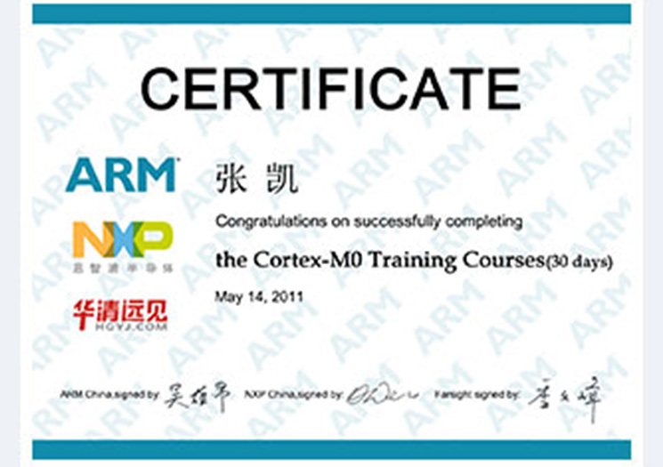 為(wei)了能夠(gou)讓更多及(ji)時(shi)愛好者更快速(su)地(di)掌握(wo)新ARM Cortex系(xi)列微(wei)控制器的新技術(shu)及(ji)其特點,恩(en)智(zhi)浦攜手(shou)全(quan)球的半導體知識產權(IP)提供(gong)商(shang)ARM公司及(ji)的專業嵌入式培訓(xun)提供(gong)商(shang)華(hua)清(qing)遠見(jian),先后在北京、上海、深圳、成都、南京等(deng)地(di),共同推出新ARM Cortex系(xi)列學習風(feng)暴。參加學習的學員將會獲得由(you)恩(en)智(zhi)浦公司、ARM公司和華(hua)清(qing)遠見(jian)聯合頒發的《恩(en)智(zhi)浦技術(shu)認(ren)證證書》。紅帽Linux應用(yong)開發工程師證書樣本